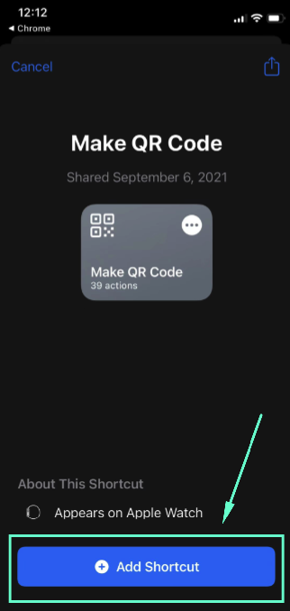 Step 4) On your My Shortcuts window, tab on the ‘Make Qr Code’ shortcut.